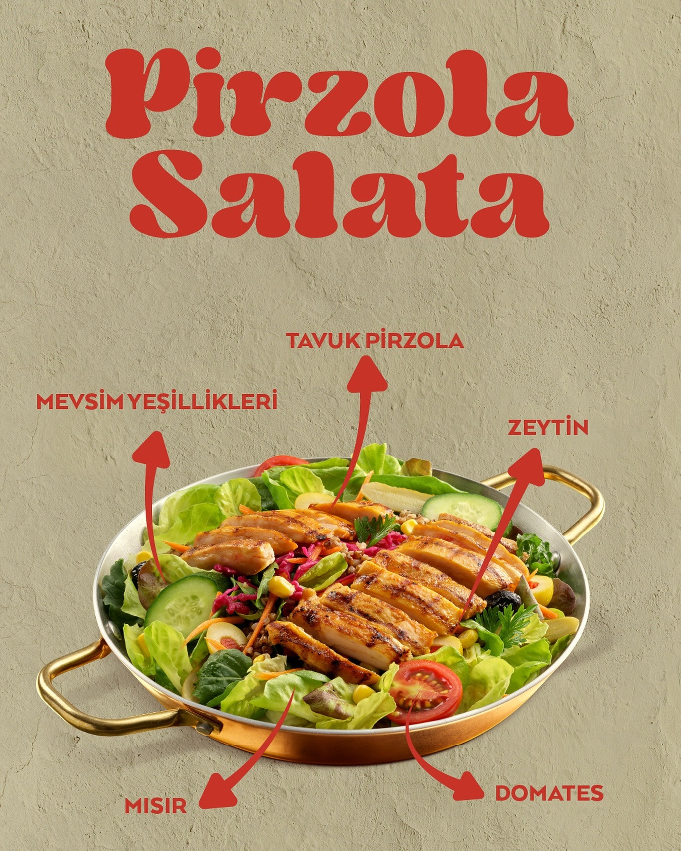 PİRZOLA (TAVUK BUT) 115-120 gr. ZIRH KÖFTE (DANA) 75 gr. ŞİNİTZEL (TAVUK GÖĞÜS) 115-120 gr. Pesto Soslu Özel Fettuccine 200 gr. Salata Mix 100-110 gr. Sambal Sos 40 gr.